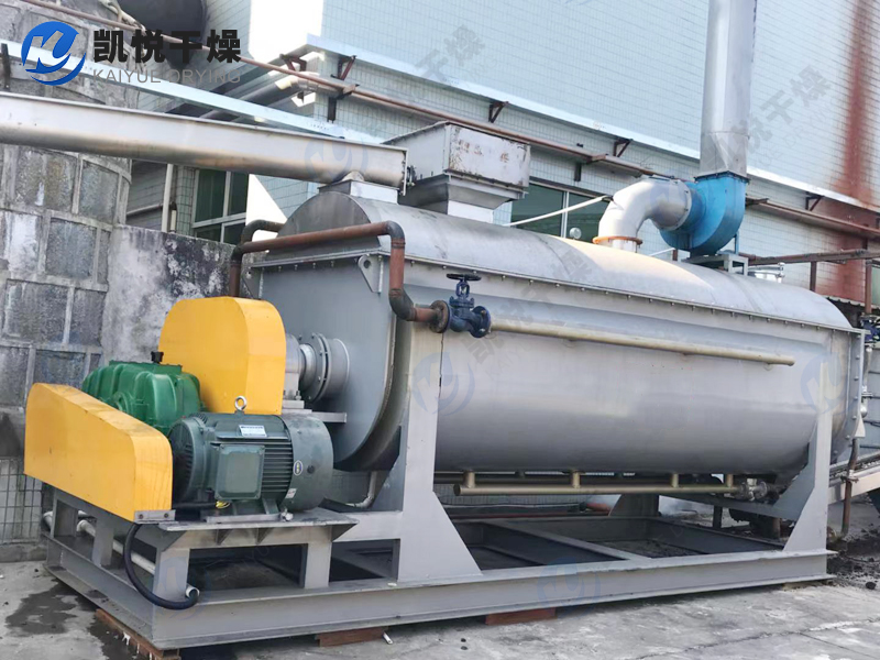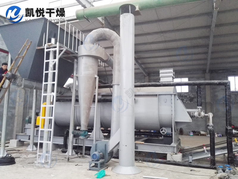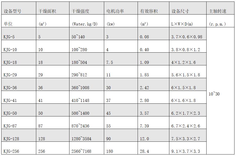 2、熱能利用率高,能耗低,裝料量可達(dá)筒體體積的70~80%,由于間接加熱,沒有大量攜帶空氣帶走熱量,干燥器外壁又設(shè)置保溫層,蒸發(fā)1kg水僅需1.2kg水蒸氣。