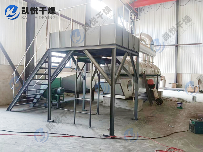 物料自進(jìn)料進(jìn)口進(jìn)入機(jī)內(nèi),在振動(dòng)力作用下,物料沿水平面流化床拋擲,向前連續(xù)運(yùn)動(dòng),熱風(fēng)向上穿過(guò)流化床同濕物料換熱后,濕空氣經(jīng)旋風(fēng)分離器除塵后由排風(fēng)1:3排出.干燥物料由排料進(jìn)口排出。